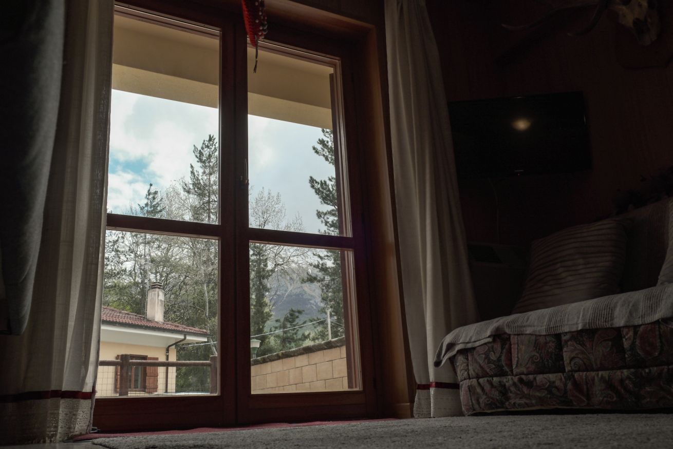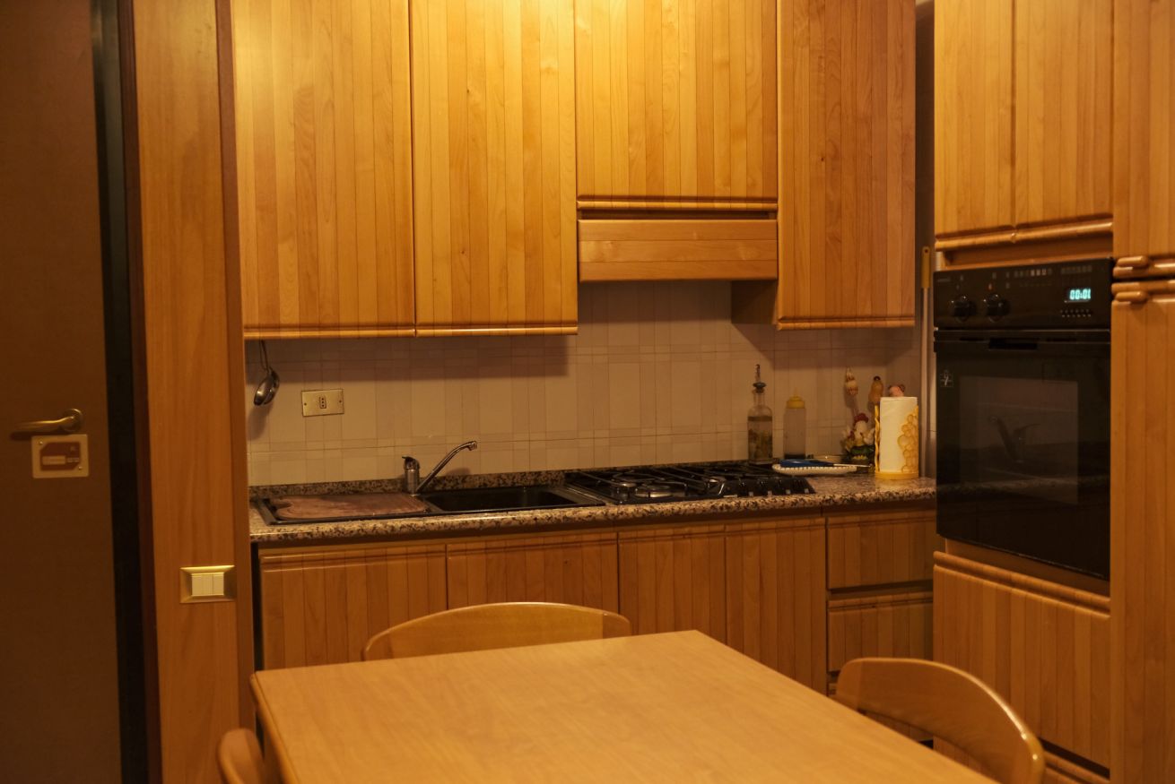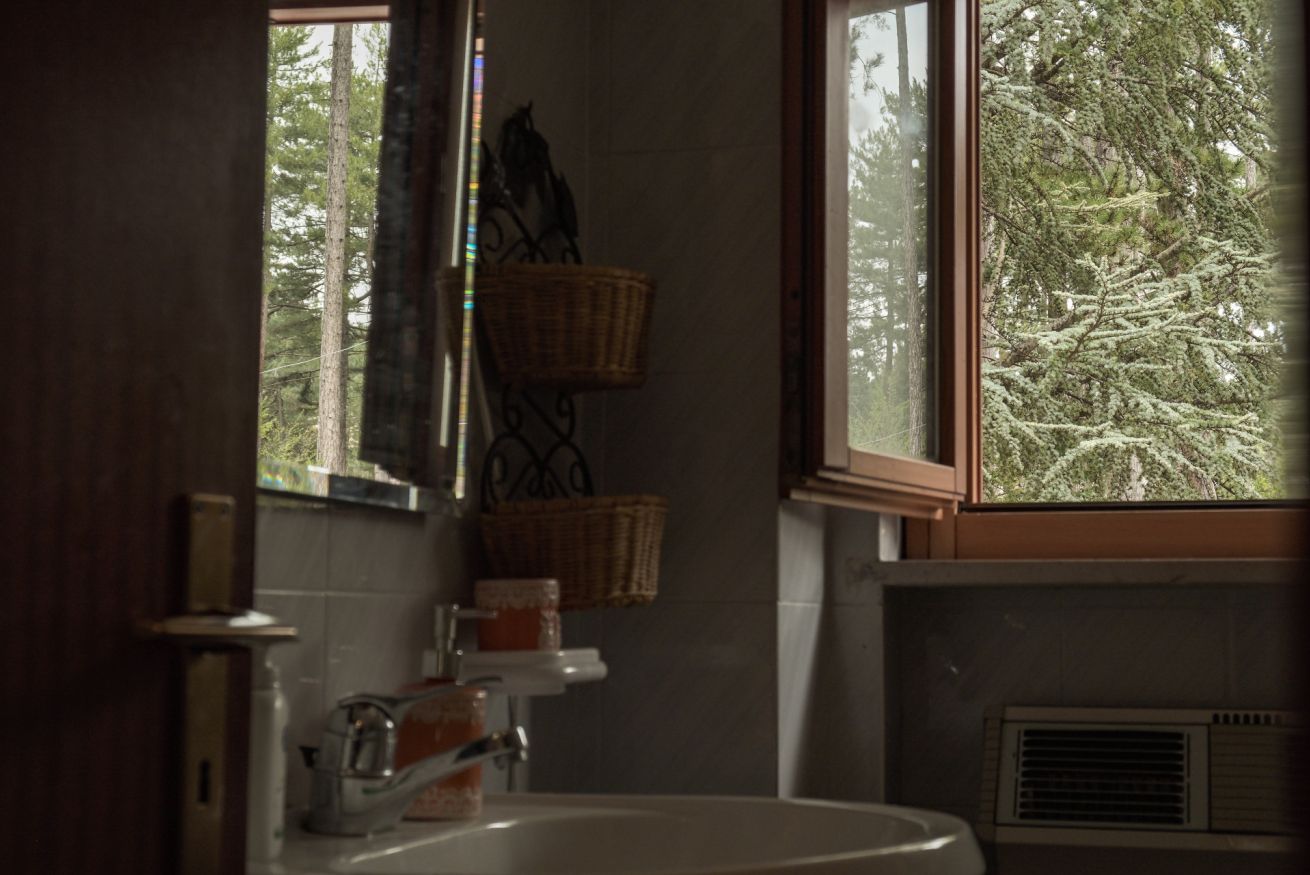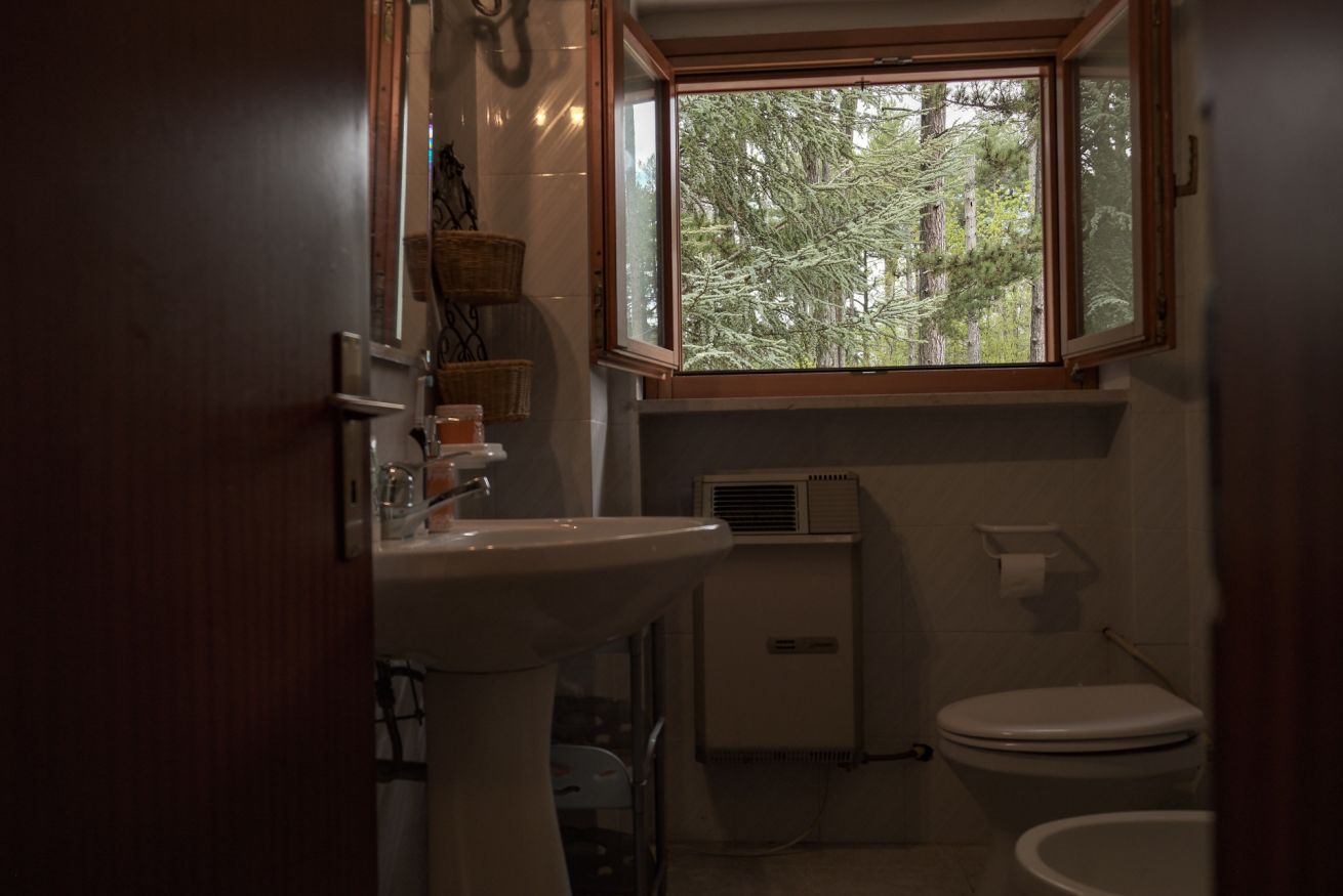 L’appartamento si affaccia su una pineta suggestiva, abitata da scoiattoli neri dal petto bianco che spesso si possono osservare saltare tra i rami. Basta uscire nel giardino privato per ritrovarsi immersi nella natura e respirare la quiete della montagna.